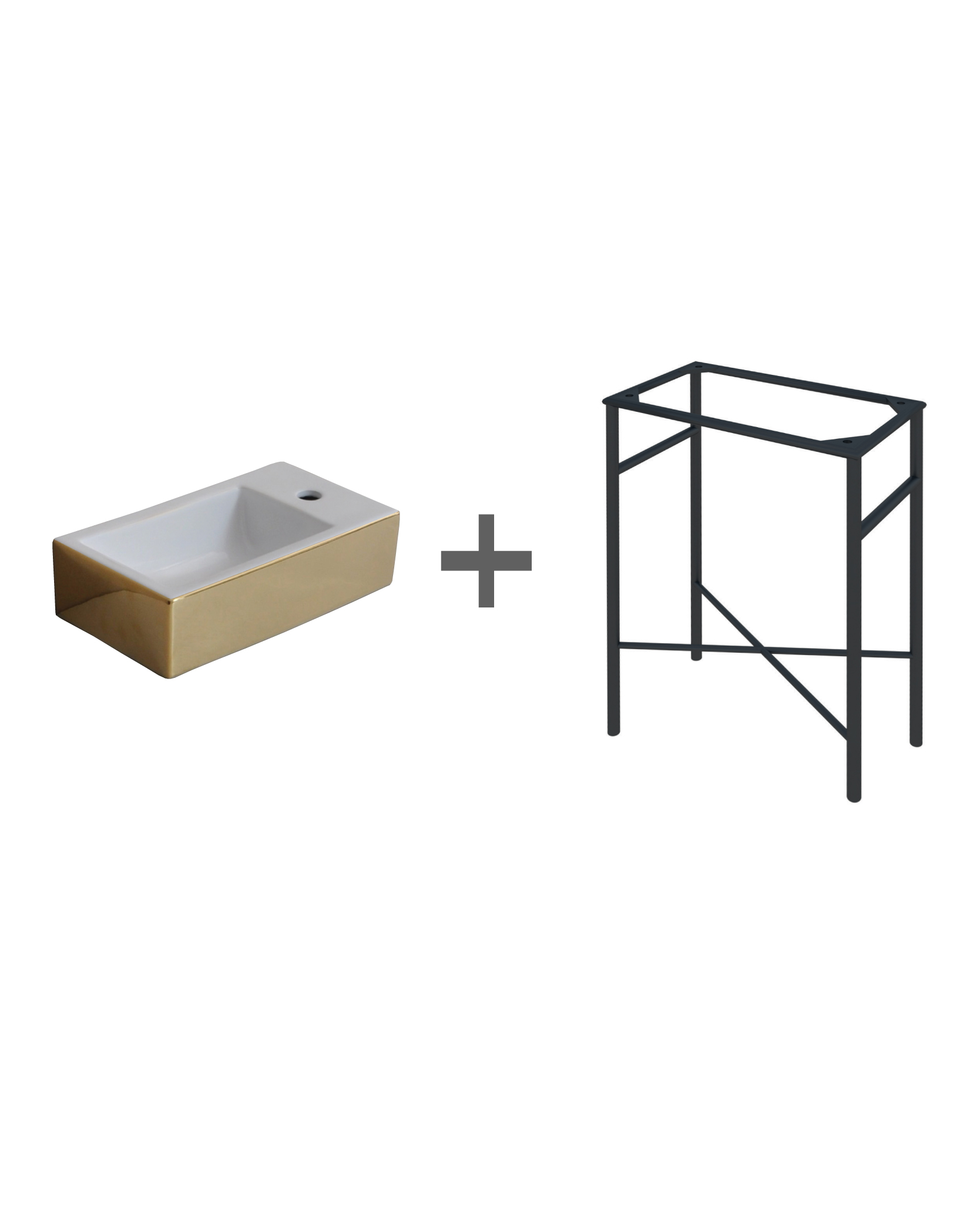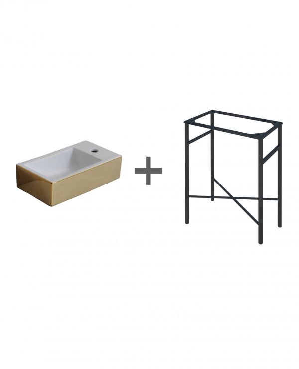 סט טל לבן כולל כיור טל זהב בשילוב לבן ושילדת מתכת אדסון שחור מט